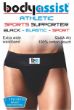 A multi purpose sports supporter featuring a power-knit pouch with rapid drying & cooling. FEATURES & BENEFITS. Greater resistance to bacteria, mildew growth, odors & skin irritations. Helps prevent jock itch. More comfortable than cotton or synthetic fabrics. Incorporates an 8cm knit waistband & 1cm leg straps. High rubber content assures maximum support & durability. Breathable fabric for maximum comfort. Available in Black or White in Sizes: Small, Medium, Large and XLarge. This size, Large fits Waist: 85cm - 95cm. This is a Special Order item.