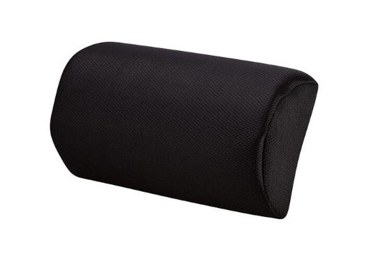 Dual layer half-roll. Polyurethane foam core. Soft memory foam outer. Soft and supportive with adjustable strap. Removable black velour cover. 344mm W x 75mm D x 140mm H